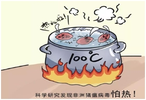 非洲猪瘟病毒怕热不怕冷。60℃ 20分钟可灭活。4 ℃可存活150天以上,25-37℃可存活数周 ,-20℃以下可存活数年。在病猪粪便中可存活数周;在未经熟制的带骨肉、香肠、烟熏肉制品等中可存活3-6个月甚至更长;在冷冻肉中可存活数年;在餐厨垃圾中可长时间存活。