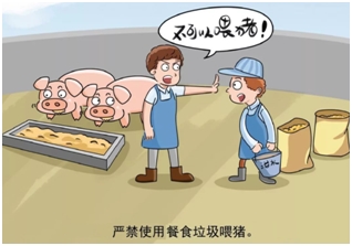 根据流行病学调查,泔水喂猪是传播非洲猪瘟的重要原因。因非洲猪瘟病毒可在泔水中长时间存活,禁止使用泔水喂猪对阻断疫病传播起到关键作用。同时据检测表明,泔水中还含有其它许多致病性细菌,对环境和人畜健康均构成严重威胁,故使用泔水喂猪存在诸多安全隐患。