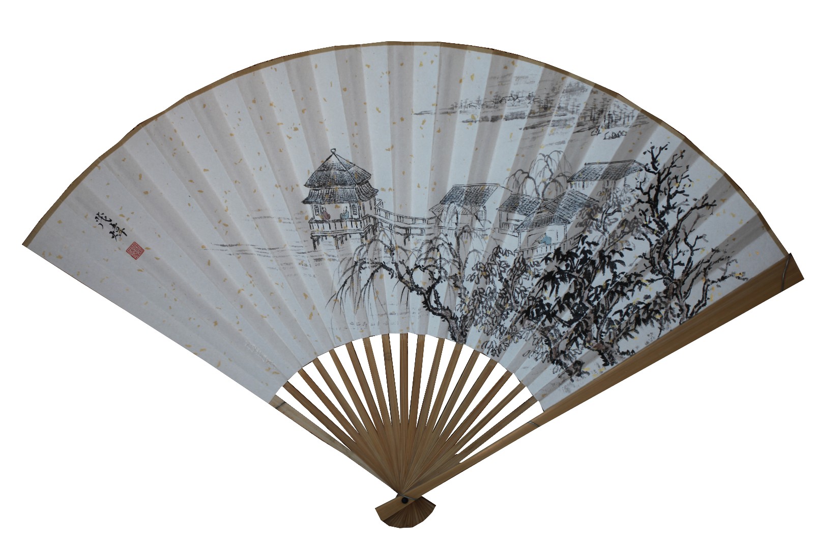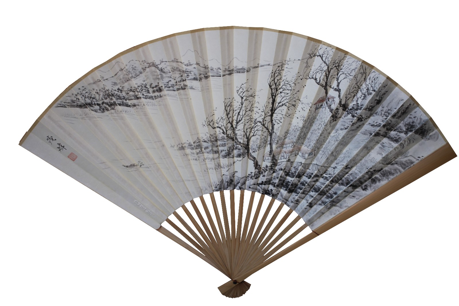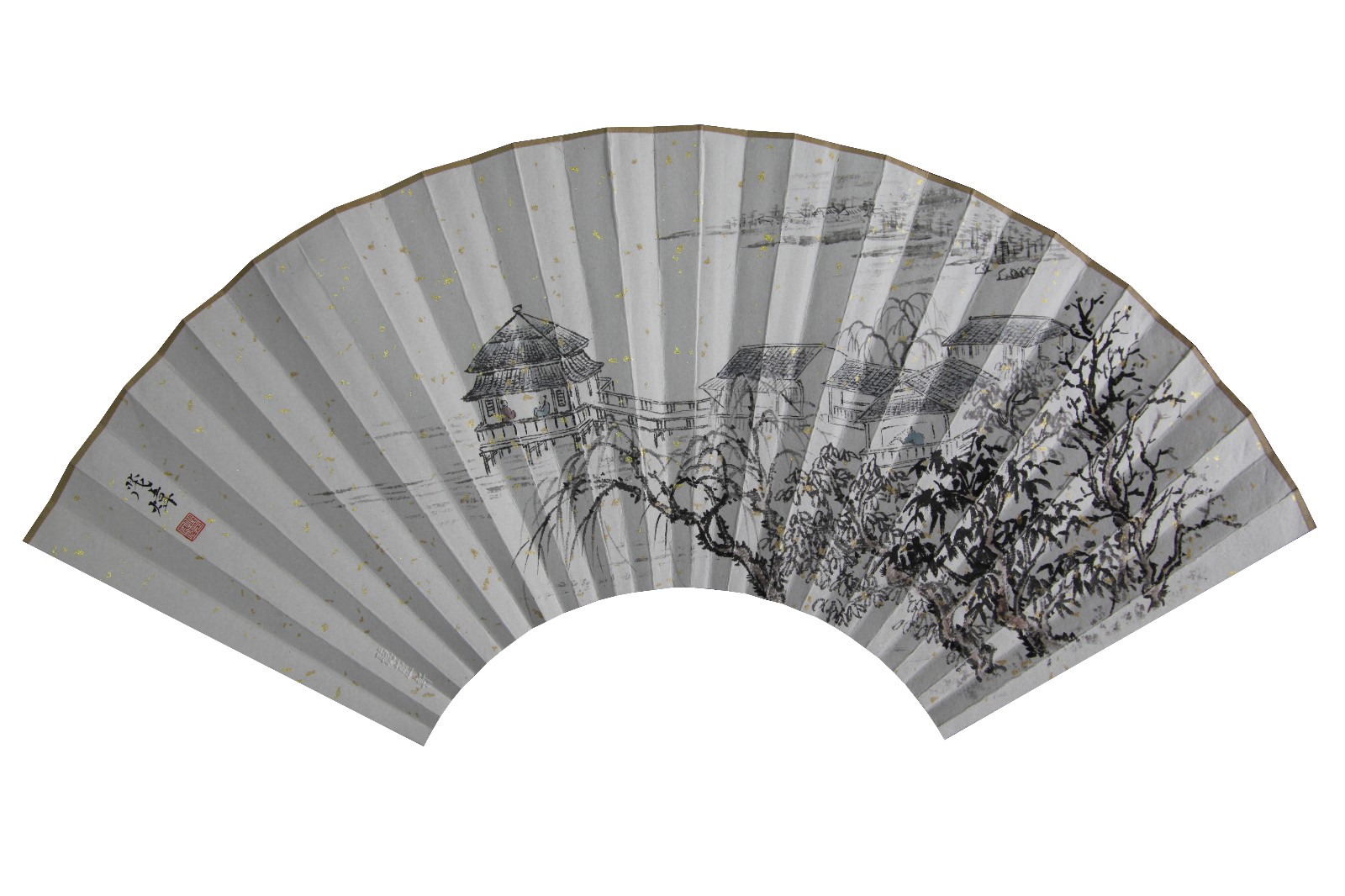 在宋、元时代,团扇画广为流行,特别是山水画、花鸟画在唐末、五代基础上得到空前的提高,书画扇面也相应得到飞速发展,臻于顶峰。宋代宫廷画家更是画扇成风,《书继》中载:“政和间,徽宗每有画扇,则六宫诸邸竞皆临仿一样,或至数百本。”两宋盛极一时的画扇,创作出大批不朽之作。明代以后,折扇画渐执牛耳,折扇的扇面上宽下窄,画家在命笔之时须考虑在特定空间范围内精思巧构、匠心独运、技法娴熟,一幅盈尺小品往往能体现创作者在自然情态下的艺术造诣和笔墨意趣,随形布势、随纸施技、随心造境。工笔写意,皴擦点染无不展现其间,山水人物,花卉翎毛无不传神其上。