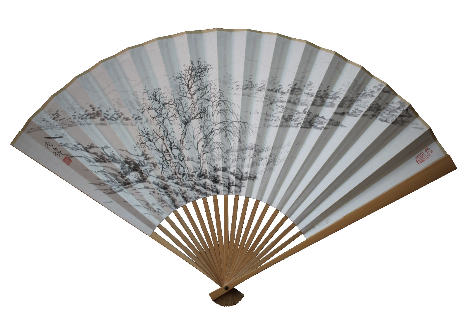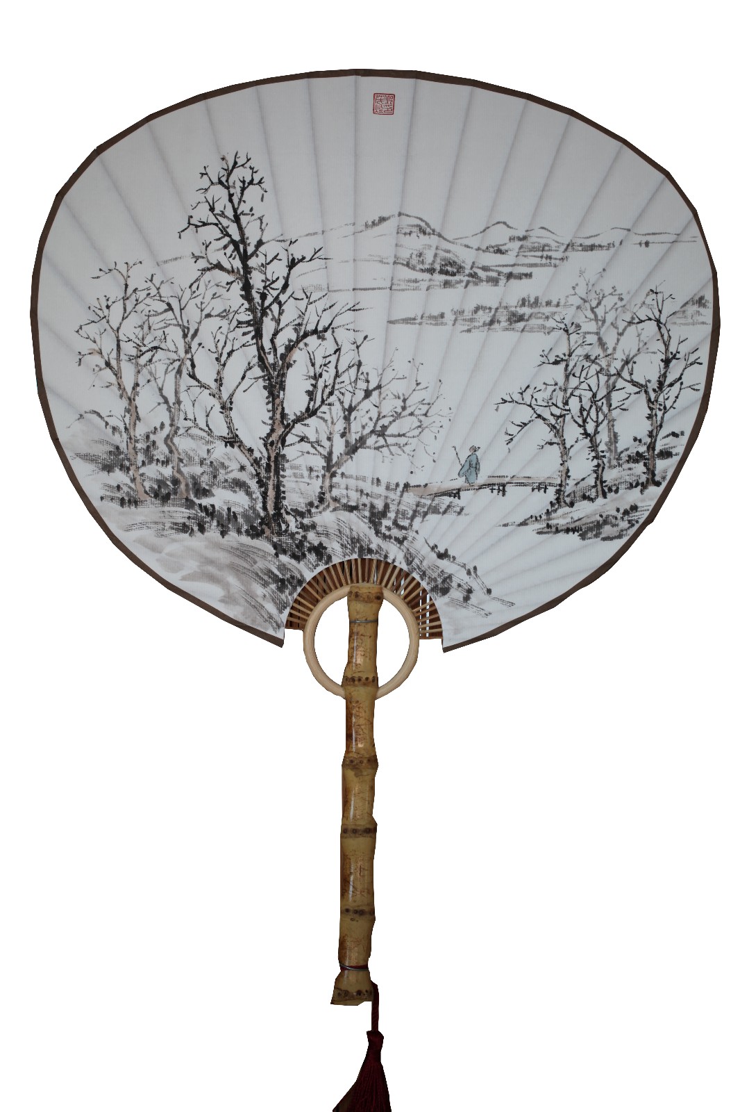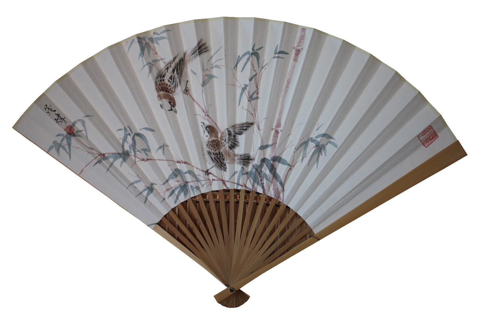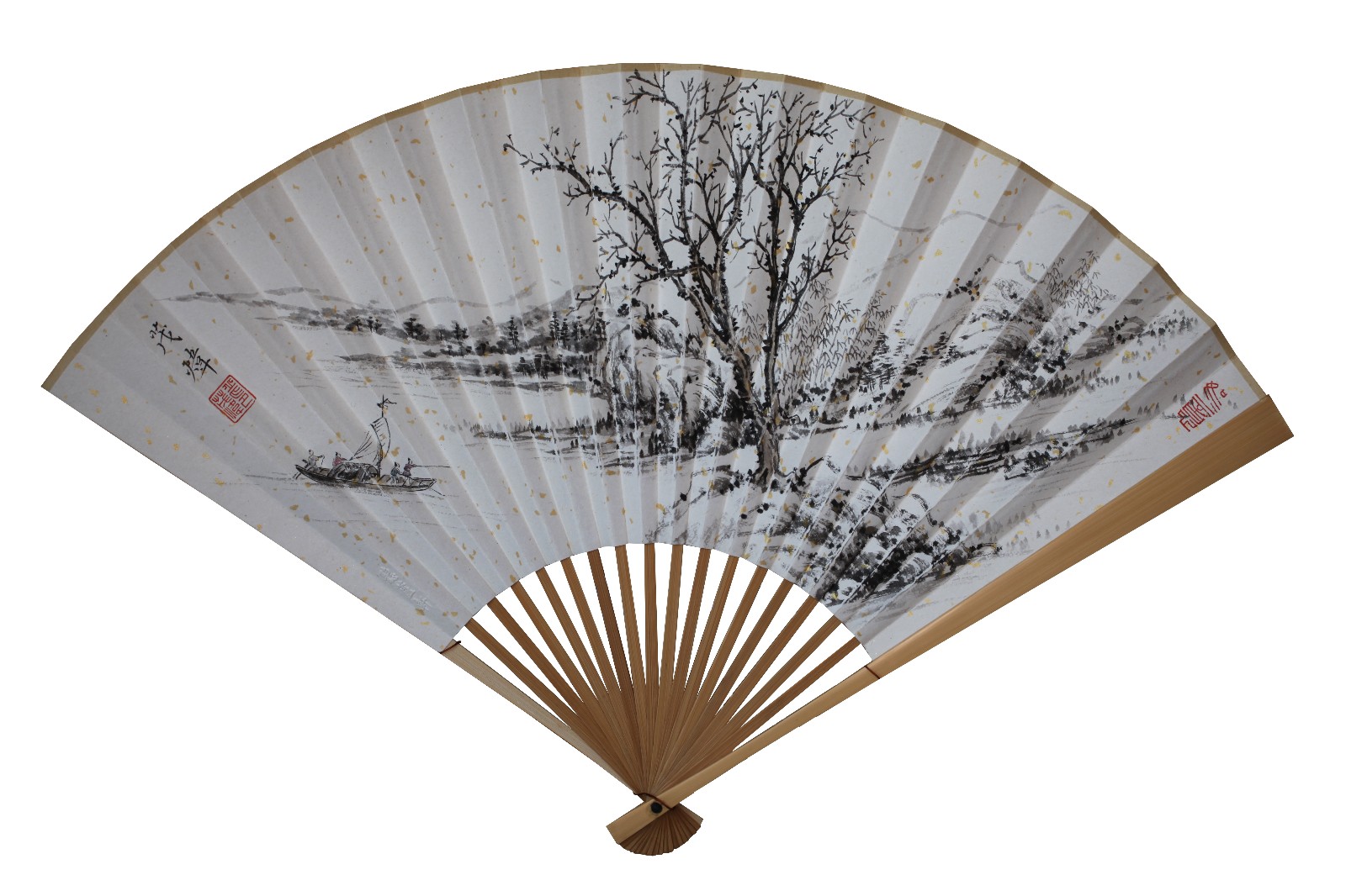 在宋、元时代,团扇画广为流行,特别是山水画、花鸟画在唐末、五代基础上得到空前的提高,书画扇面也相应得到飞速发展,臻于顶峰。宋代宫廷画家更是画扇成风,《书继》中载:“政和间,徽宗每有画扇,则六宫诸邸竞皆临仿一样,或至数百本。”两宋盛极一时的画扇,创作出大批不朽之作。明代以后,折扇画渐执牛耳,折扇的扇面上宽下窄,画家在命笔之时须考虑在特定空间范围内精思巧构、匠心独运、技法娴熟,一幅盈尺小品往往能体现创作者在自然情态下的艺术造诣和笔墨意趣,随形布势、随纸施技、随心造境。工笔写意,皴擦点染无不展现其间,山水人物,花卉翎毛无不传神其上。